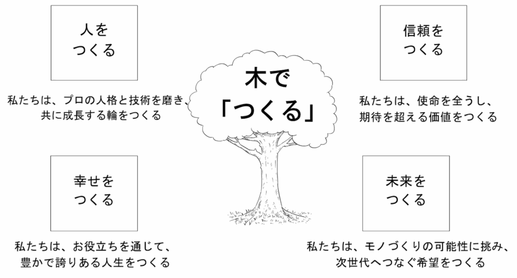私たちは、木で「つくる」という経営理念を通して4つの「つくる」を実現していきます。